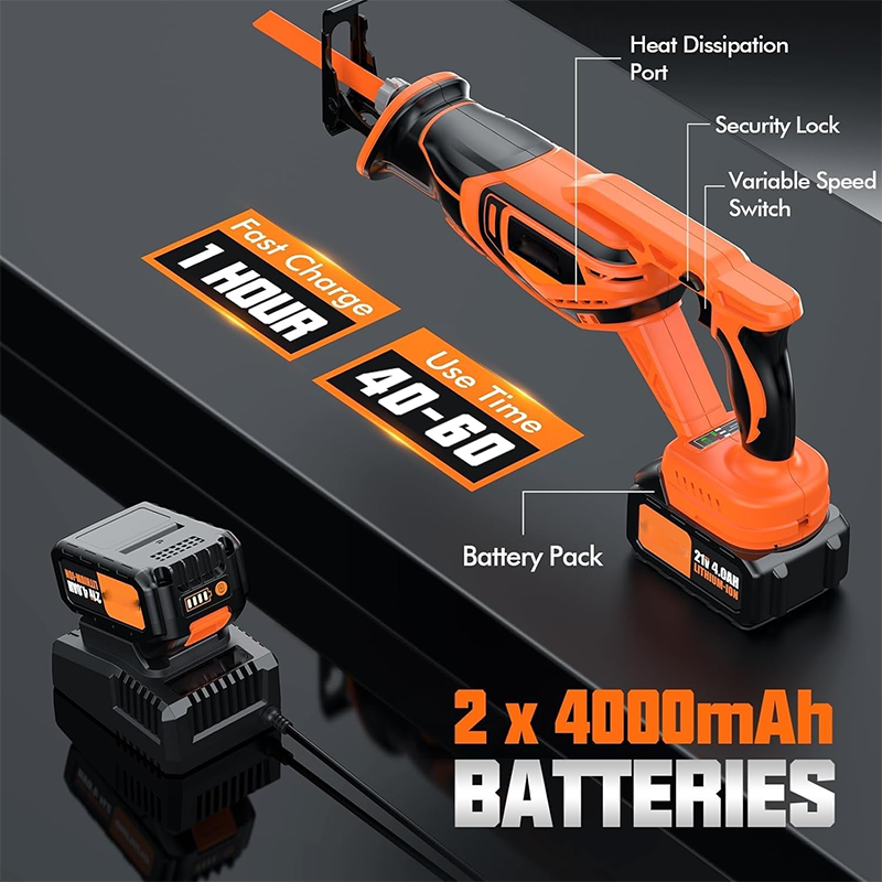 The cordless reciprocating saw design frees you from the hassle of dragging, pulling and locating the power cord. It is a reliable