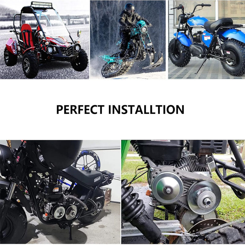 Full-Set Equipment : This kart torque converter kit includes the main parts: a 3/4" driver pulley and a 5/8" driven pulley,and includes other accessories like drive belt,plastic assy cover,aluminum mounting bracket plate,and full mounting hardware kit