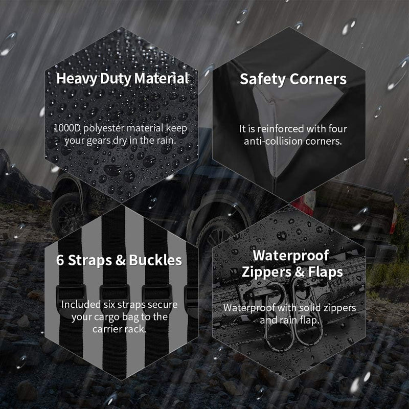 1. 1000D polyester material keepyour gears: dryin the rain. Provide 100% waterproof protection.
