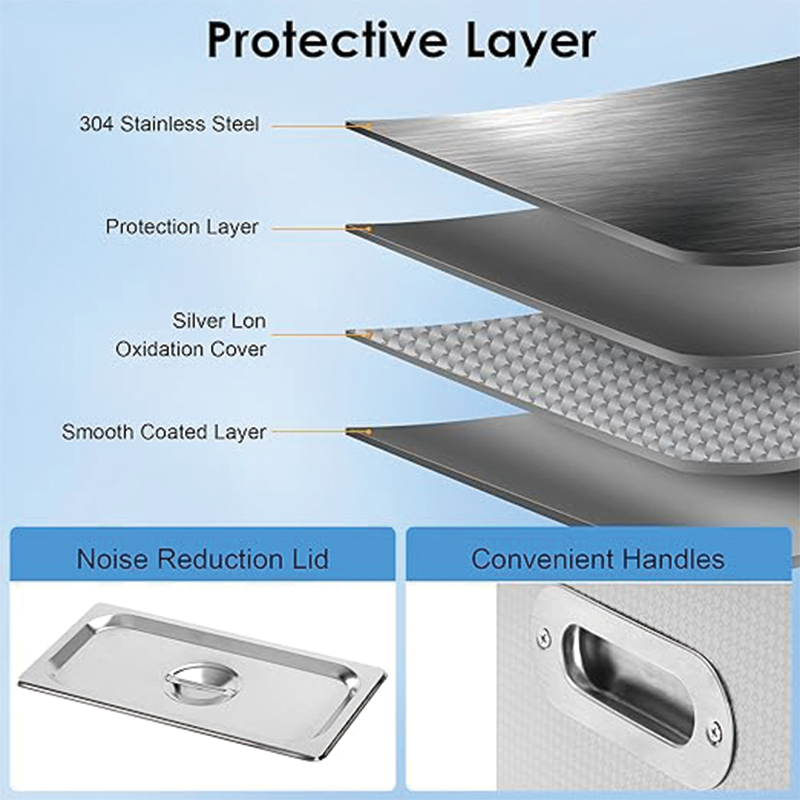 Powerful Cleaning Effect:40kHz ultrasonic frequency can be used to clean objects with complex surfaces. Ultrasonic power 600W, heating power 500W. The scientific frequency and power parameter design of the ultrasonic cleaner can effectively clean the items.