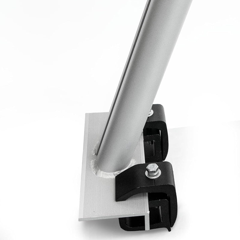 The truck ladder rack is installed using C-mounting clamps, which provide a secure and easy-to-remove installation.