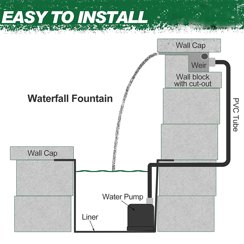 Easy to install: The pond waterfall can be used for embedded installation, external waterfall installation and exterior
